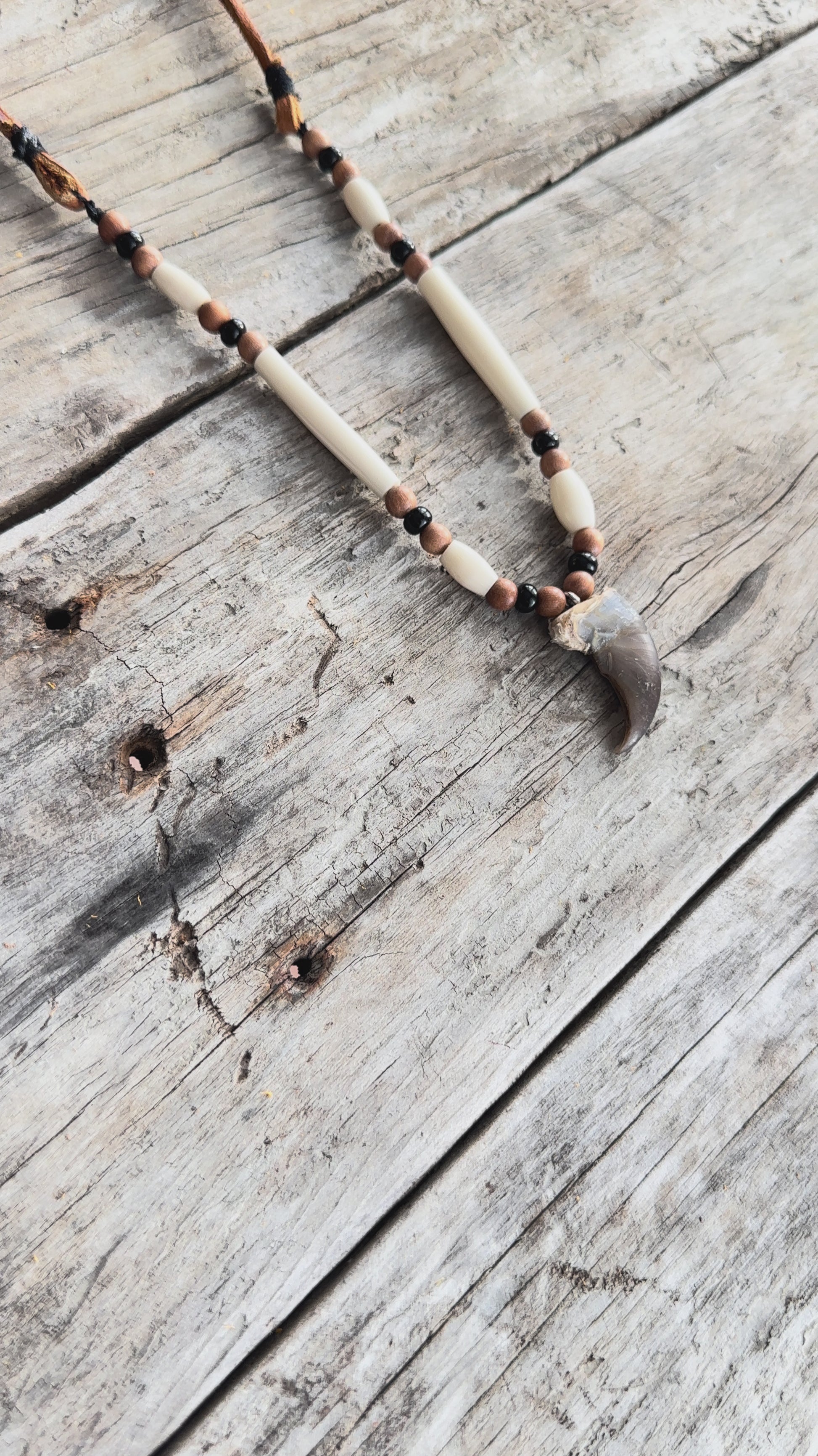 Ce type de collier est porté depuis longtemps comme symbole de force intérieure, de protection et de respect envers les animaux du territoire. Il accompagne autant les personnes qui vivent en nature que celles qui recherchent une connexion spirituelle dans leur quotidien.