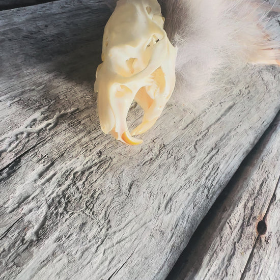 Dieser hochwertige Totem-Redestab, verziert mit einem echten Bisamrattenschädel, verbindet Sie mit der stillen Kraft des Lebens und authentischer Sprache.