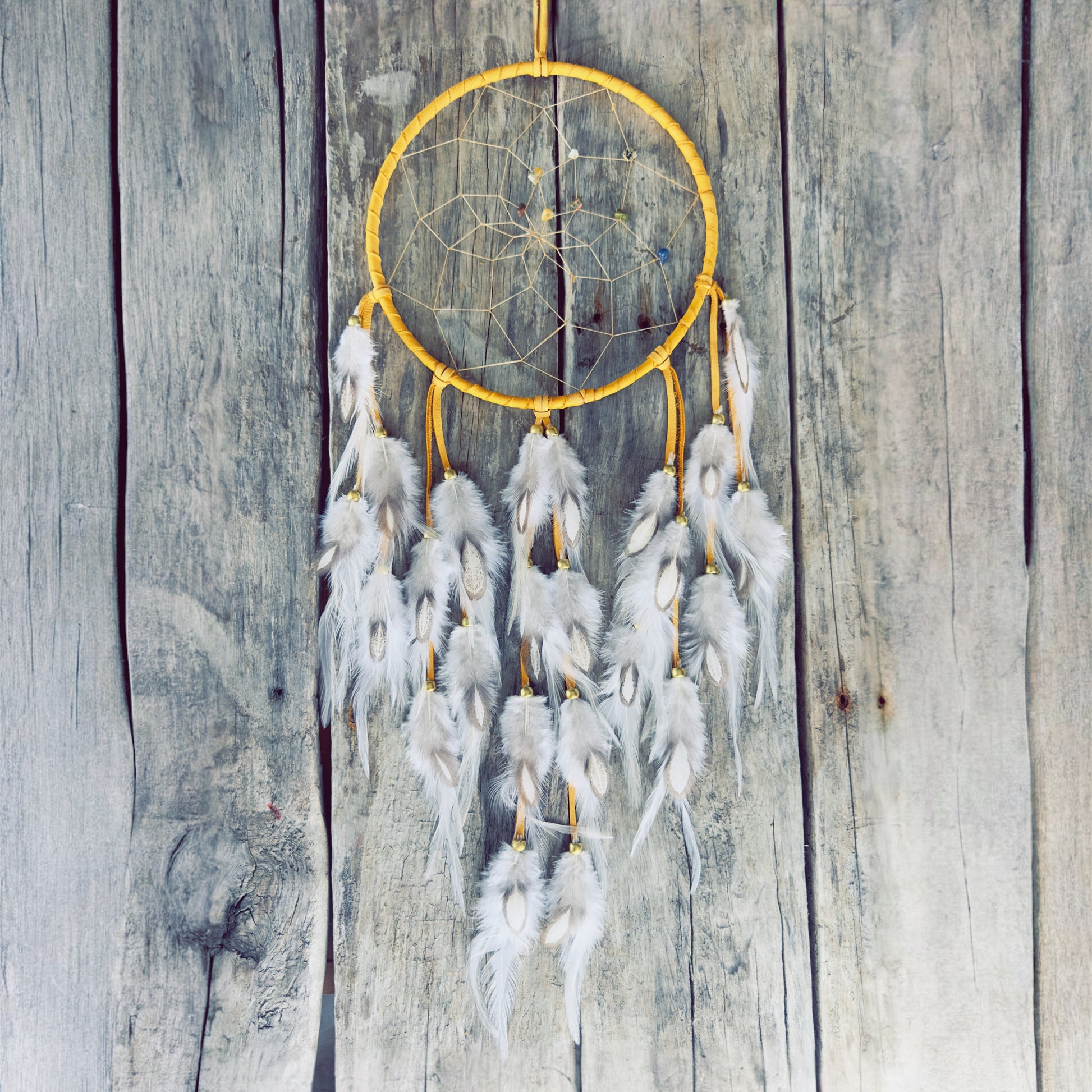 The Sun Within – 20 cm großer Traumfänger aus goldgelbem Originalleder