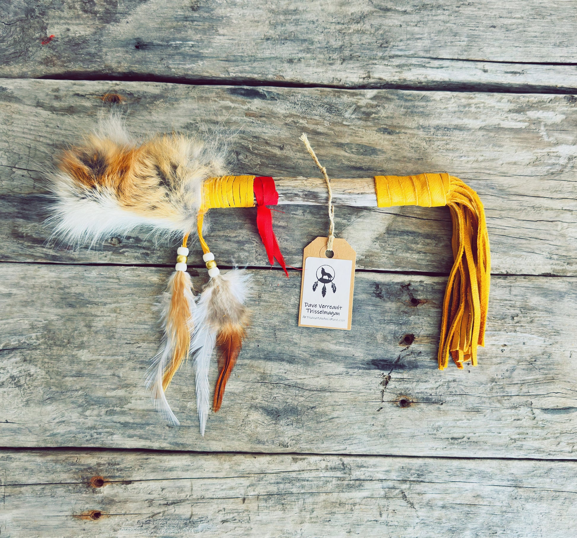 Ce bâton de parole artisanal est inspiré d’une tradition autochtone ancestrale où la parole circule dans le respect et l’écoute. Fabriqué à la main avec du cuir d’orignal, de la fourrure et des plumes naturelles, il est idéal pour les réunions d’équipe, les formations ou les ateliers de communication consciente. Sa taille compacte (6 à 10 pouces) le rend parfait pour un usage en milieu professionnel tout en conservant la symbolique spirituelle du cercle.